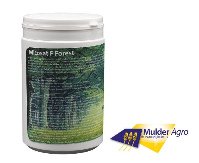 Is een product speciaal ontwikkeld voor het planten van bomen en struiken. Het bevat Endo- en Ectomycorrhiza en effectieve microbern om de weerbaarheid in de bodem aanzienlijk te verbeteren. Micosat Forest wordt in Nederland veel toegepast bij de grote boomkwekers. Toedienen met de hand maat schepje of granulaatstrooier. Dosering afhankelijk van het gewas en bodemgesteldheid 10-20 kilo per ha.